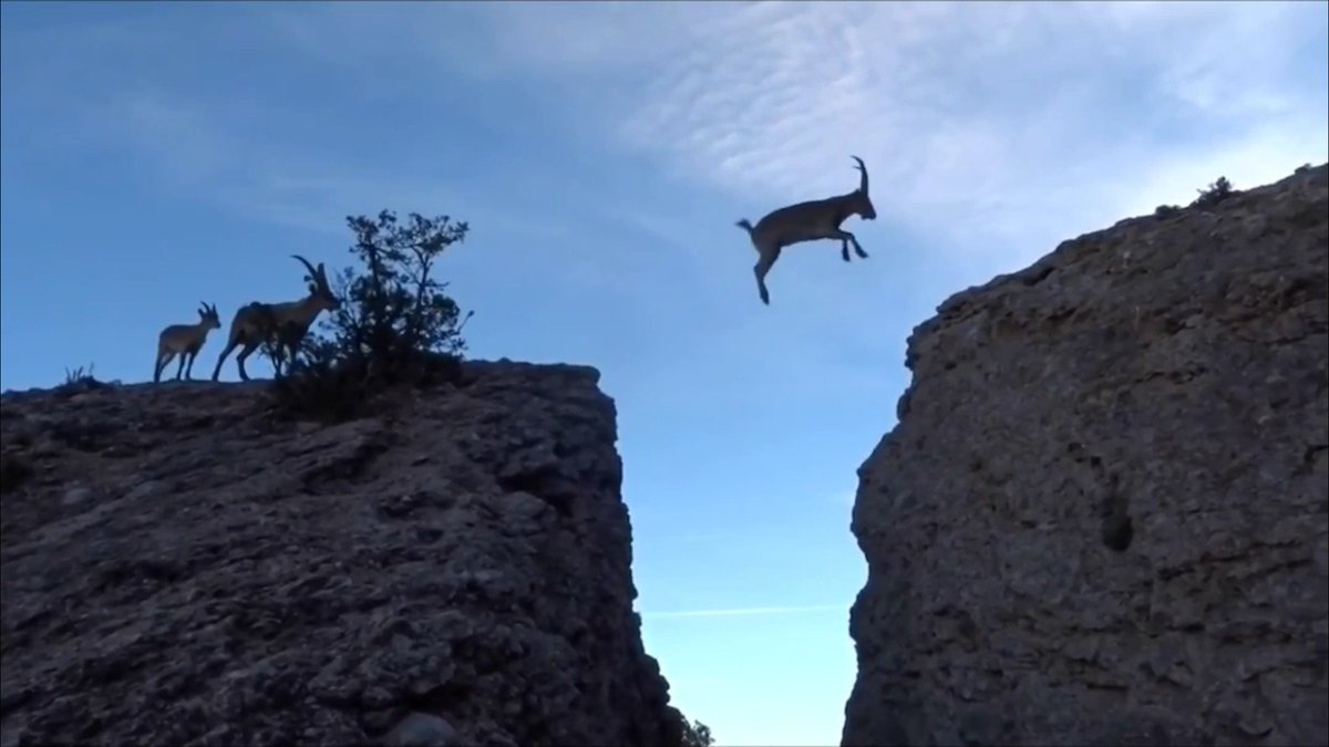 الماعز الجبلي يمكن أن يصعد بسهوله وحرفيه عاليه على المنحدرات الحادة وبكل سهوله ويسر ويبدو عليه كأنه يستمتع الأعالي.