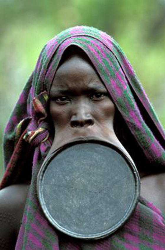 قبائل السارا والوبو في إثيوبيا وتشاد يعتبرون أهم زينة للمرأه بتزيين الشفاه بقطعة كبيرة مستديرة من الخشب بطريقه عجيبة وغريبه
