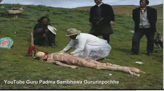 يعتقد البوذيون أن الحياة في حلقة مفرغة من ولادة جديدة، وهو ما يعني أنه ليست هناك حاجة للحفاظ على الجسد بعد الموت، لأن الروح انتقلت إلى عالم آخر. ولذلك نقلت جثث القتلى إلى ارتفاعات وعالية جدا بواسطة ربط أجزاء من الجثث المقطعة بطيور مثل النسور من أجل التخلص من أجزاء الجسم في أسرع وقت ممكن والطير بها ودفنها عاليا بالسماء. !!!